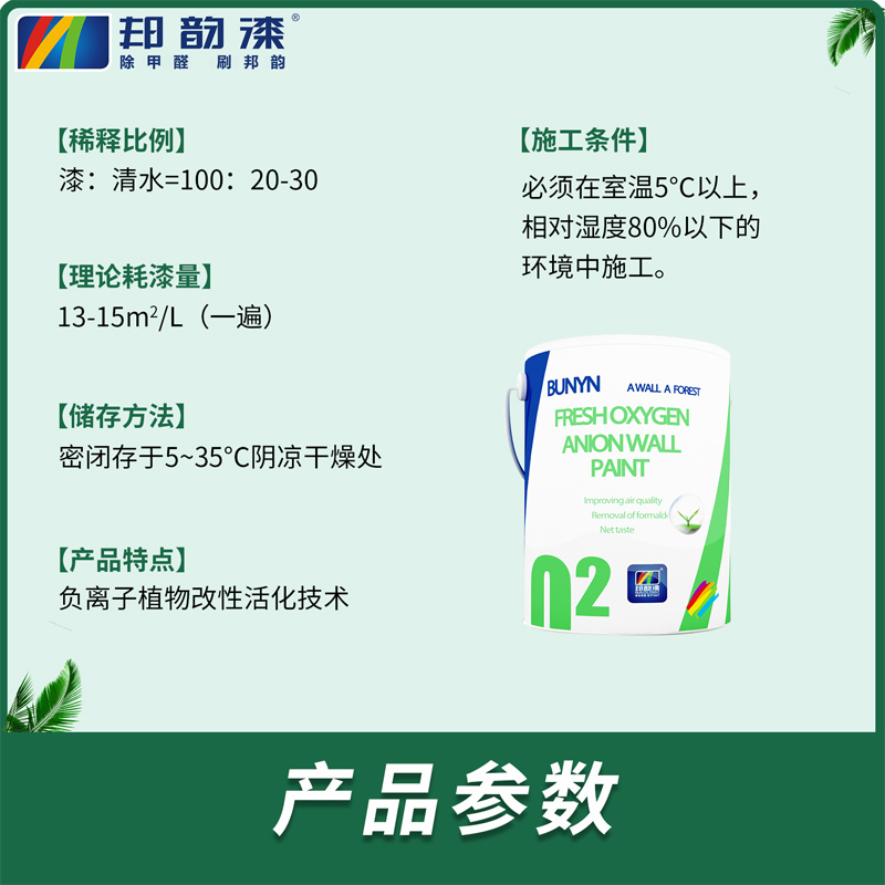 鲜氧负离子哑光墙面漆,负离子植物改性活化技术,甲醛分解率90%以上,释放负离子10440个/cm³